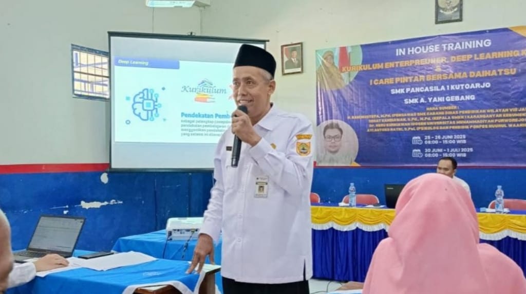 Diikuti bapak ibu guru SMK Pansa Kutoarjo dan SMK A.Yani, kegiatan IHT bertema tentang Pembelajaran Deep Learning dan Kurikulum Enterpreneur ini dibuka oleh Pengawas SMK dari Cabdin Pendidikan Wilayah VIII Jateng H. Bani Mustofa, S.Pd., M.Pd., Rabu (25/06/2025).