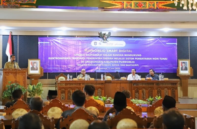 Seperti pada Senin (02/06/2025). Berlangsung di ruang Arahiwang komplek Setda Purworejo, digelar kegiatan sosialisasi program Purworejo Smart Digital dengan judul Literasi Masyarakat dalam rangka Mendukung Elektronifikasi Transaksi Pemerintah Daerah Melalui Sistem Pembayaran Non Tunai di Lingkungan Kabupaten Purworejo.