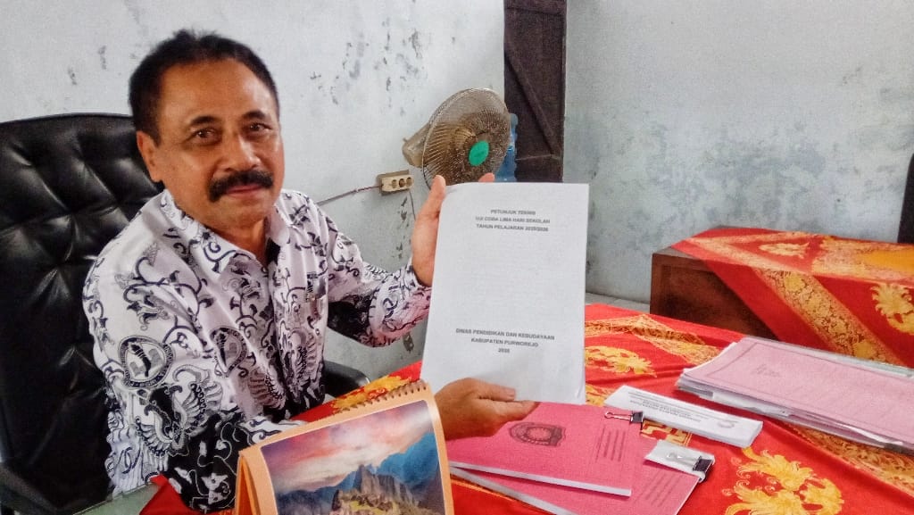 Ketua PGRI Kabupaten Purworejo Irianto Gunawan, menunjukkan hasil kajian lima hari sekolah - foto: Koranjuri.com