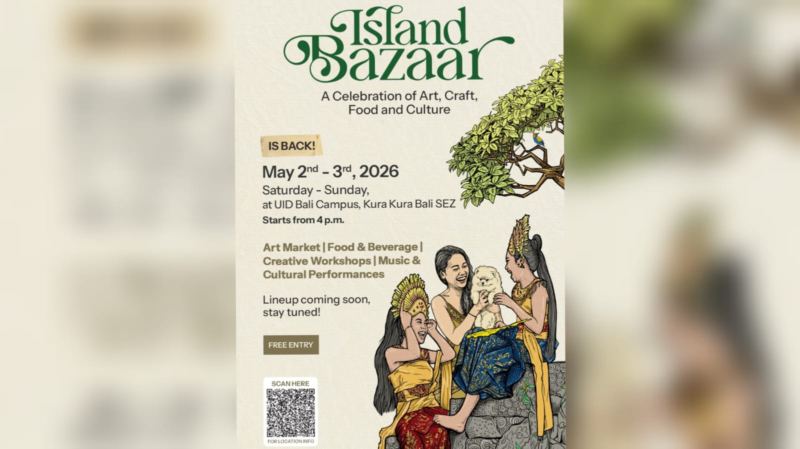 KORANJURI.COM – Green Islan Bazzar kembali digelar di UID Bali Campus, Kawasan Ekonomi Khusus (KEK) Kura Kura Bali pada 2-3 Mei 2026.