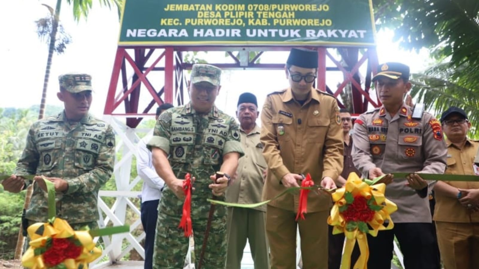 KORANJURI.COM – Wakil Bupati Purworejo Dion Agasi Setiabudi SIKom MSi dan Komandan Kodim 0708 Purworejo Letkol Inf Ketut Hendra Budihardja turut serta bersama Komandan Korem (Danrem) 072 Pamungkas Bambang Sujarwo SH MSos MM, meresmikan Jembatan Gantung Garuda yang berada di Desa Plipir, Kecamatan Purworejo, Kabupaten Purworejo, Senin (09/03/2026).