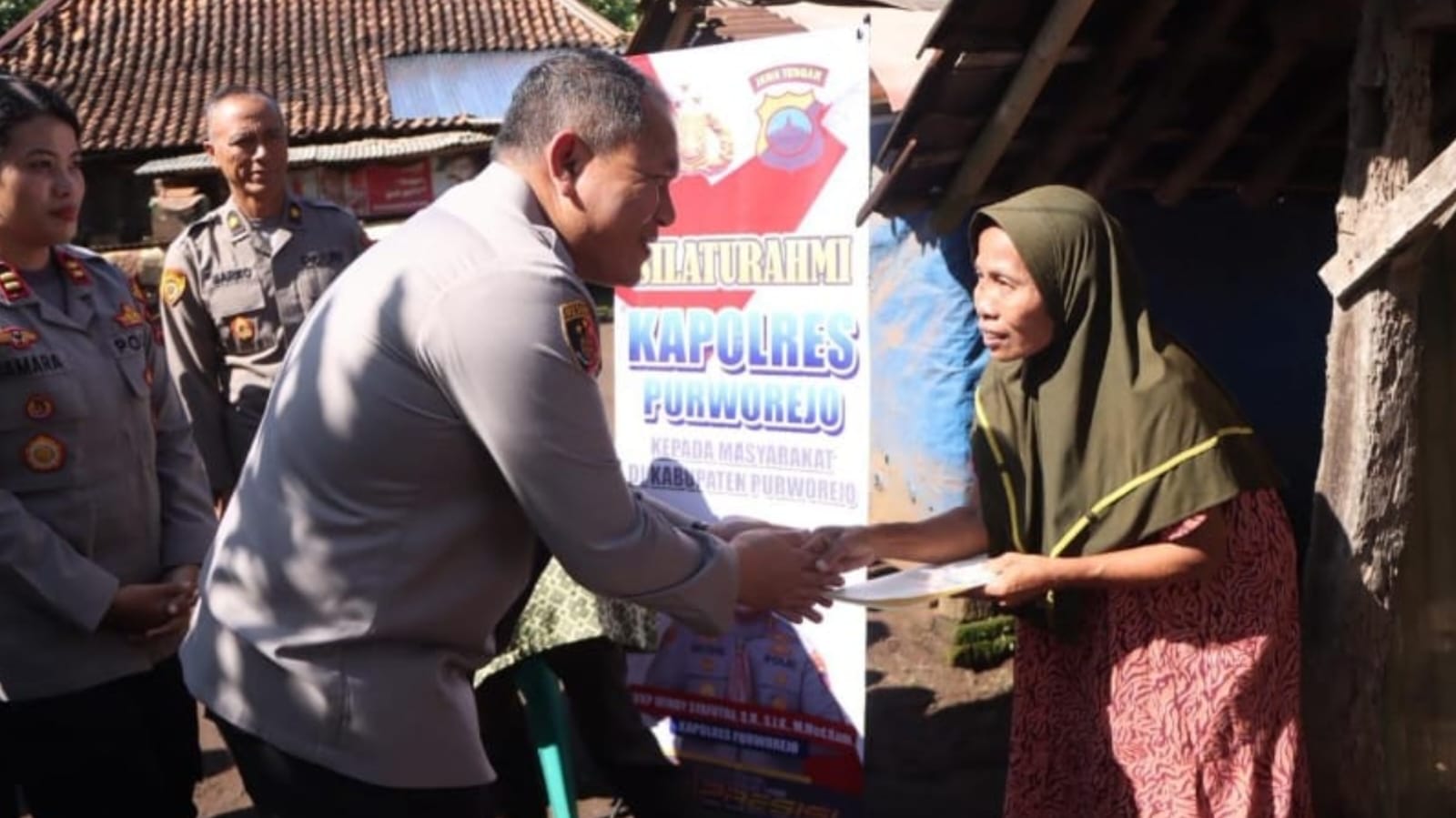 Dalam kegiatan tersebut, Kapolres Purworejo memberikan bantuan sembako kepada Mbah Sari (70), seorang lansia yang hidup seorang diri tanpa suami dan anak.