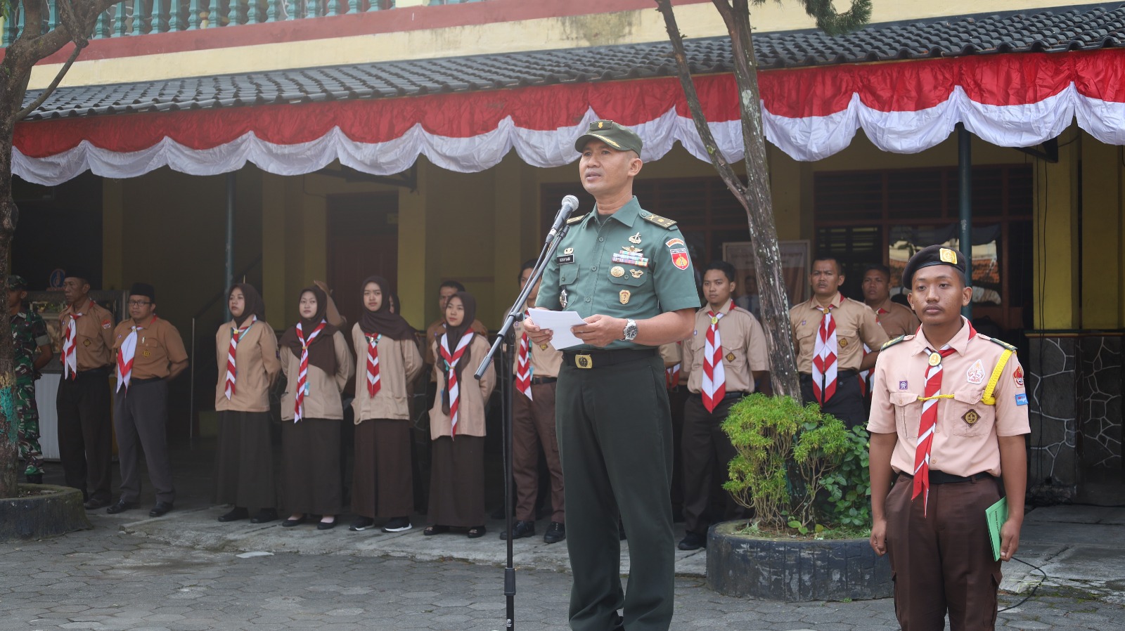 Membacakan amanat Dandim, Rokhyani berharap kegiatan ini dapat bermanfaat bagi siswa dalam belajar berorganisasi dan membentuk karakter, disiplin, dan rasa kebangsaan.