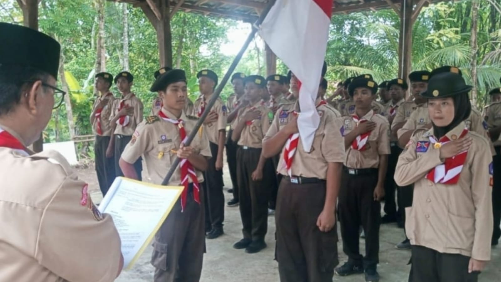 Suasana haru dan bangga menyelimuti prosesi penyematan tanda pangkat Bantara di pundak para peserta, menandakan mereka kini memiliki tanggung jawab lebih besar dalam kepramukaan.