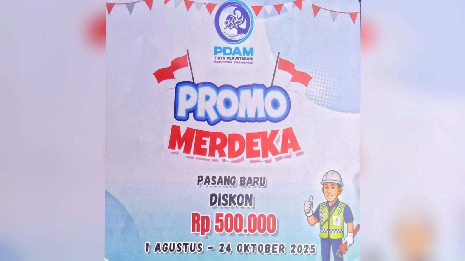 KORANJURI.COM – Perumda Air Minum Tirta Perwita Sari Purworejo (PDAM) menggelar Promo Merdeka dalam rangka perayaan HUT Kemerdekaan RI ke-79.