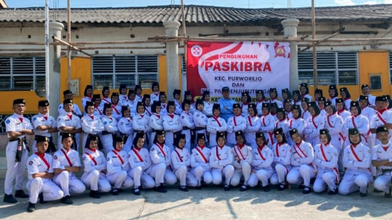 21 siswa Paskibra SMK Kesehatan Purworejo bergabung dengan Paskibra dari SMAN 7 Purworejo untuk menjadi Tim Paskibra tingkat Kecamatan Purworejo pada upacara HUT RI ke-80, Minggu (17/08/2025).