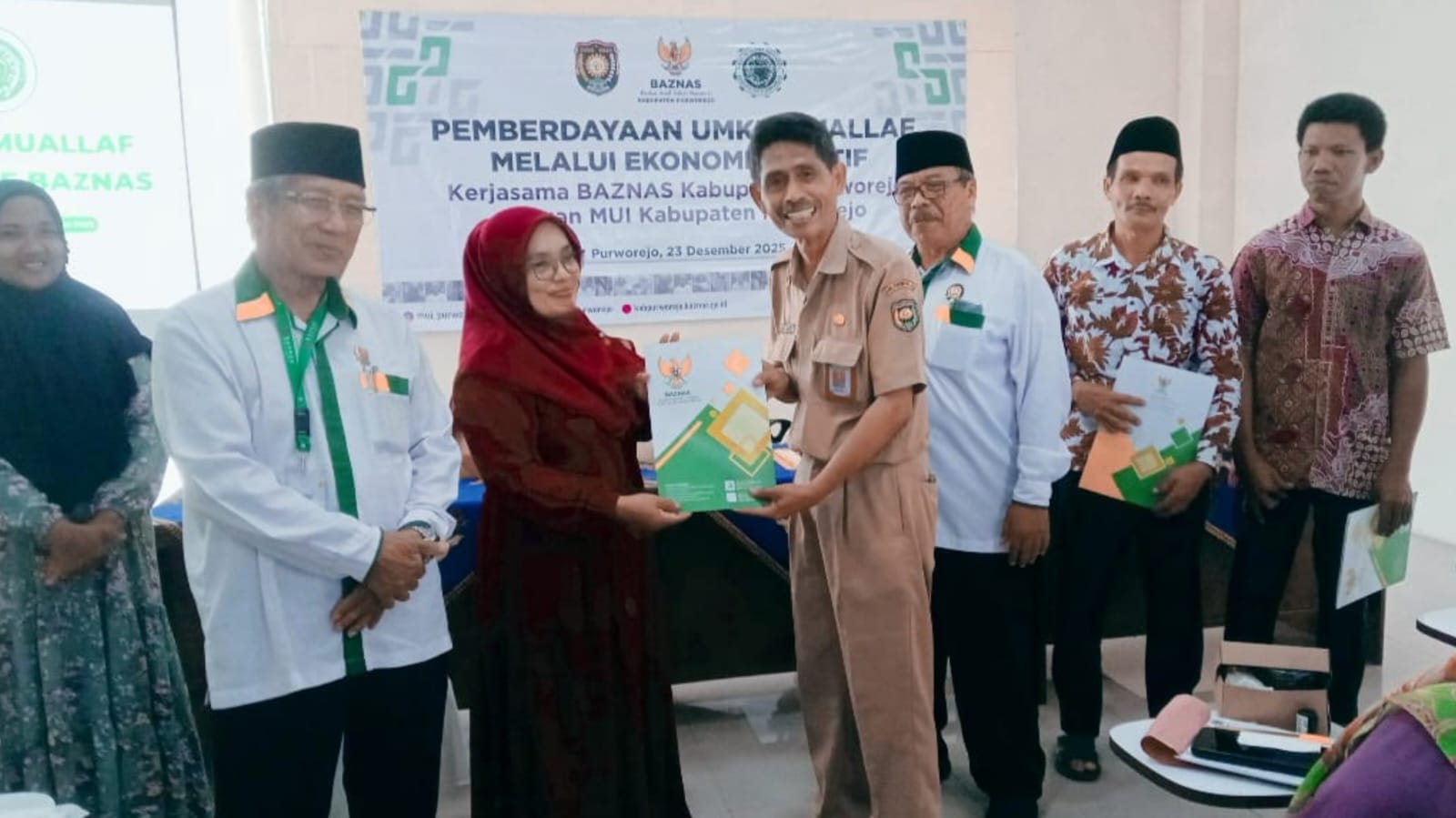 Penyerahan simbolis tambahan bantuan modal dari BAZNAS Purworejo kepada pelaku usaha mualaf - foto: Koranjuri.com