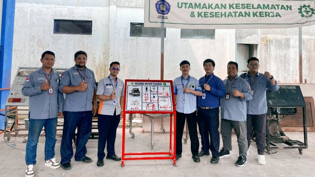 “Sebagai bentuk konkret pengabdian dan hasil dari implementasi riset mahasiswa, kami menyerahkan trainer kelistrikan bodi kendaraan kepada pihak sekolah,” ujar Dwi Jatmoko pada kesempatan tersebut.