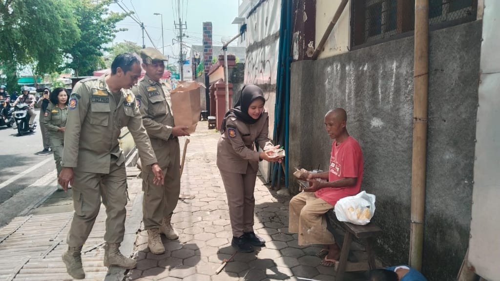 Bertempat di kawasan Jalan Pemuda, personil Satpol PP menggelar aksi sosial bertajuk “Jumat Berkah” dengan membagikan puluhan paket makanan kepada masyarakat sekitar.