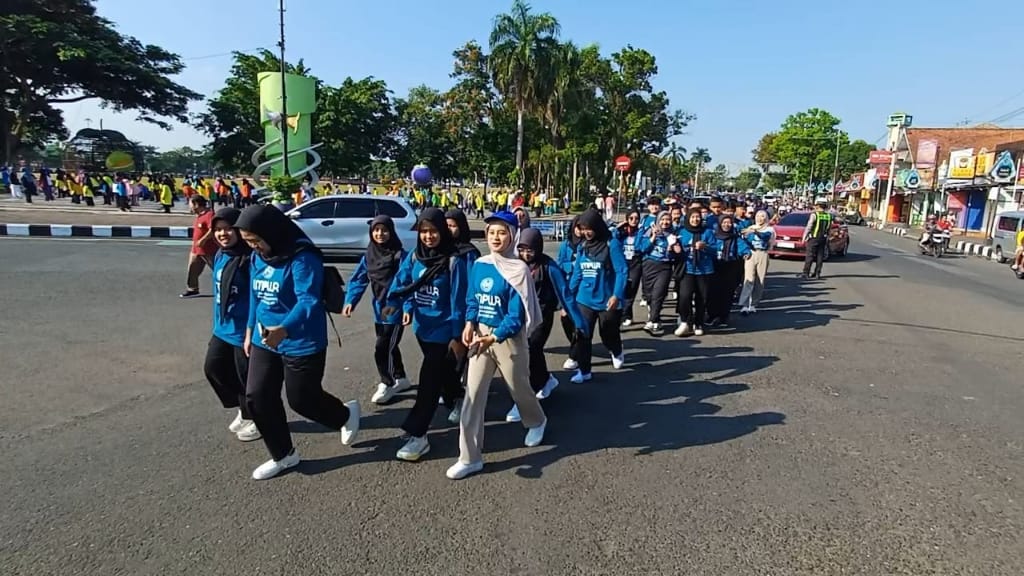 Ribuan mahasiswa baru UMPWR saat mengikuti pawai ta'aruf dalam rangka Milad ke-61 UMPWR - foto: Koranjuri.com