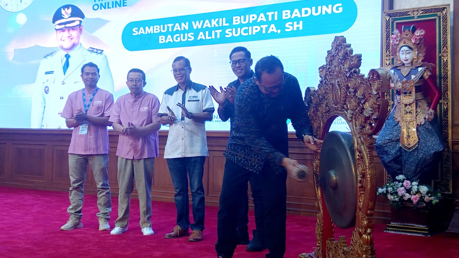 Pemukulan gong oleh Wakil Bupati Kabupaten Badung Bagus Adi Sucipta menandai pembukaan literasi digital yang digelar Serikat Media Siber Indonesia (SMSI) Kabupaten Badung, Selasa, 21 April 2026 - foto: Koranjuri.com